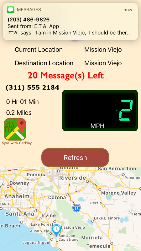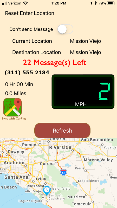 ETA will route the best path to your destination. by turning the send message button on you will be ready to send the "ETA Message" to the selected recipient. Turn on the send message to activate this function.